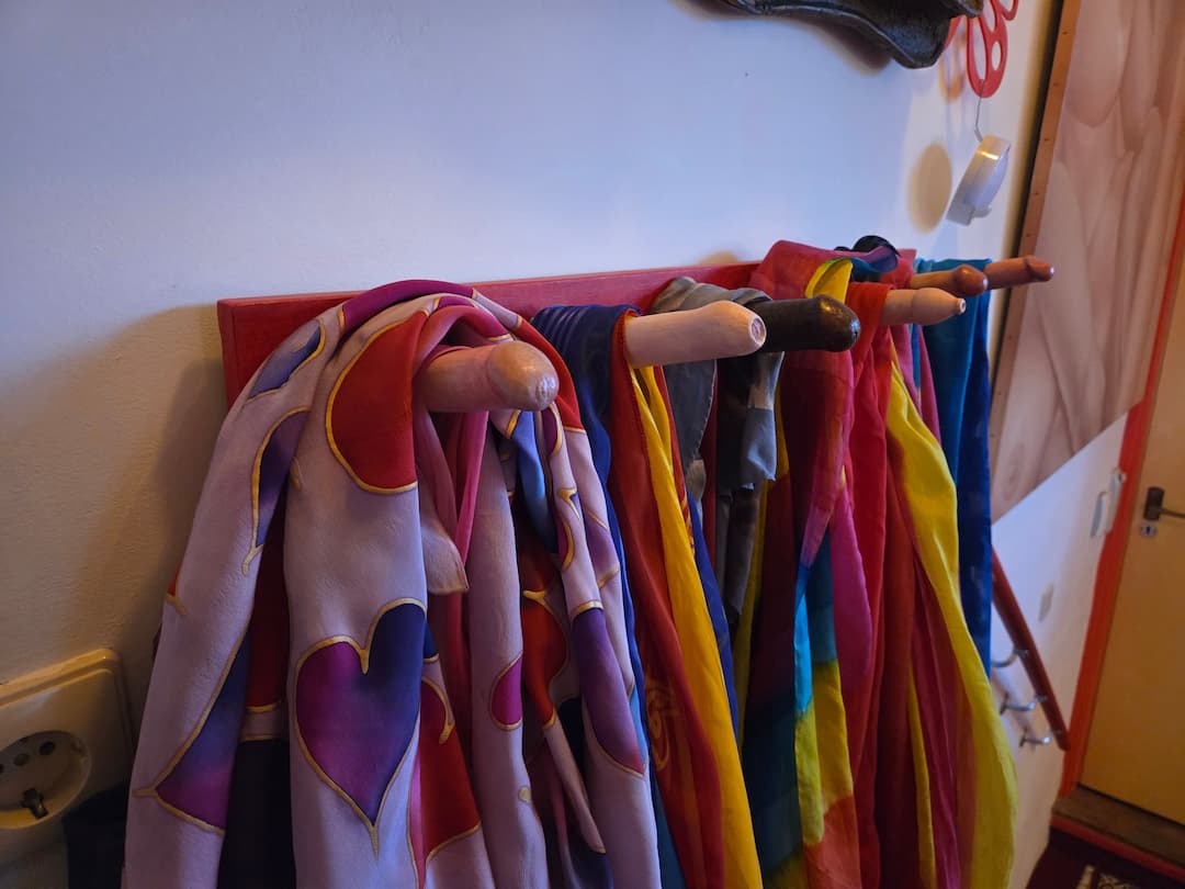 Yesterday, a dear friend of ours, whom I have known for the last 40 years, ROLF BUITER, THE ARTIST, dropped by. He is an excellent painter, but his work is rarely exposed at art galleries. Presently, he is working as a postman and has to climb many staircases inpiemels rolf Amsterdam to deliver his mail and packages. He is 61. Philip and I treated him to a healthy luncheon. And as we had not heard from him for a while, we noticed that he, too, much like me, has started to get frequent pains in his legs from all these steep Dutch staircases he has to walk each day to deliver the mail. He is the ultimate bachelor and a really good artist, but somehow does not manage to live well off his artwork. He prefers to make music with some friends, but he is not a boozer. Apart from painting my house, he also created dozens of interesting and funny little and bigger coat hangers in wood, and in the shape of a penis. I use quite a few of these cute things to drape my colorful scarves around, in our hallway, on my way to the first floor, where our bedroom is. He is the eternal bachelor, has a lot of troubles with his older brothers, who will charge him quite a lot of money when he has convinced them to help him take his paintings by car to some well-known galleries. Also, he seldom has a lover, but he seems content with all his other activities. And life in general.